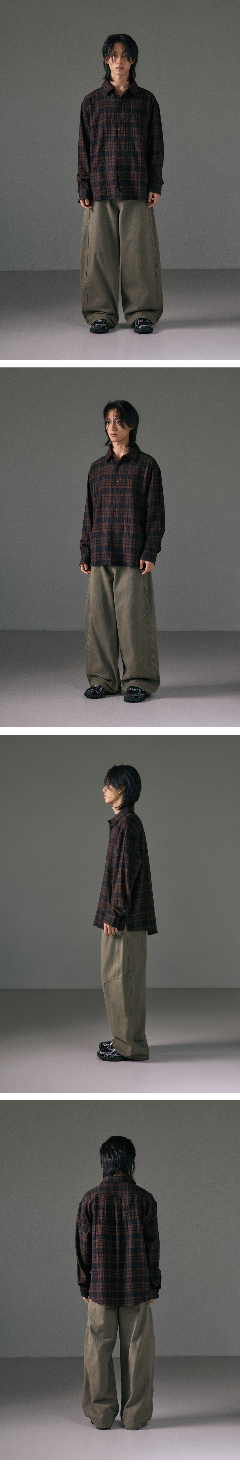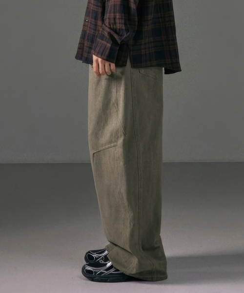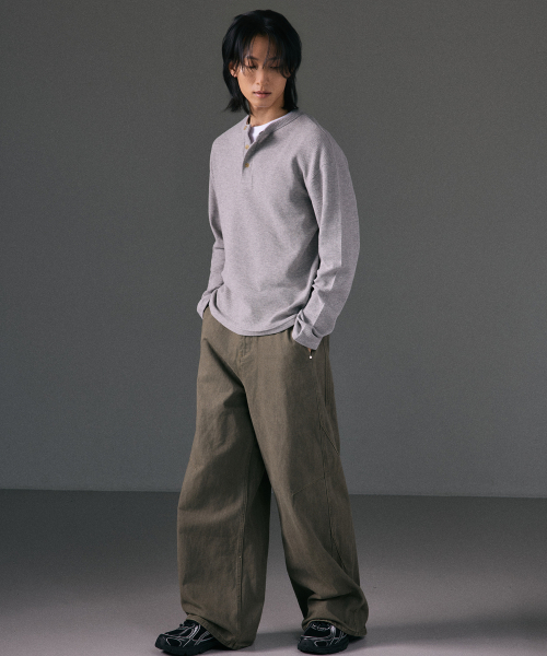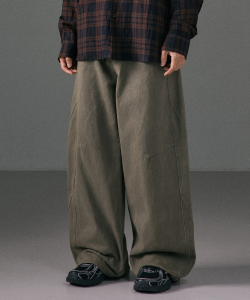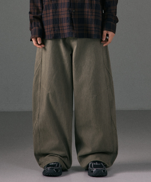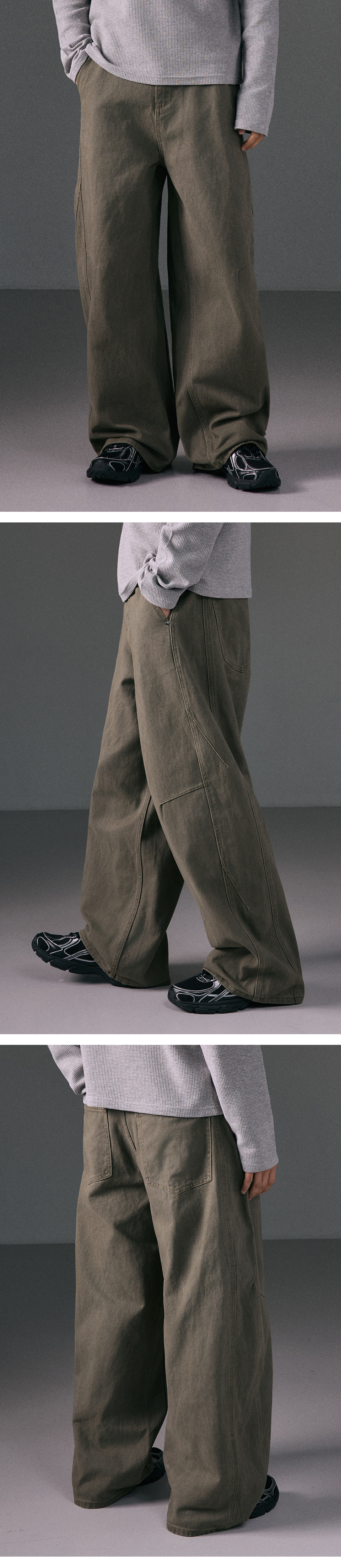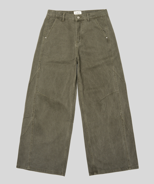 내추럴 워시드 코튼 와이드 스트레이트 팬츠 [카키]