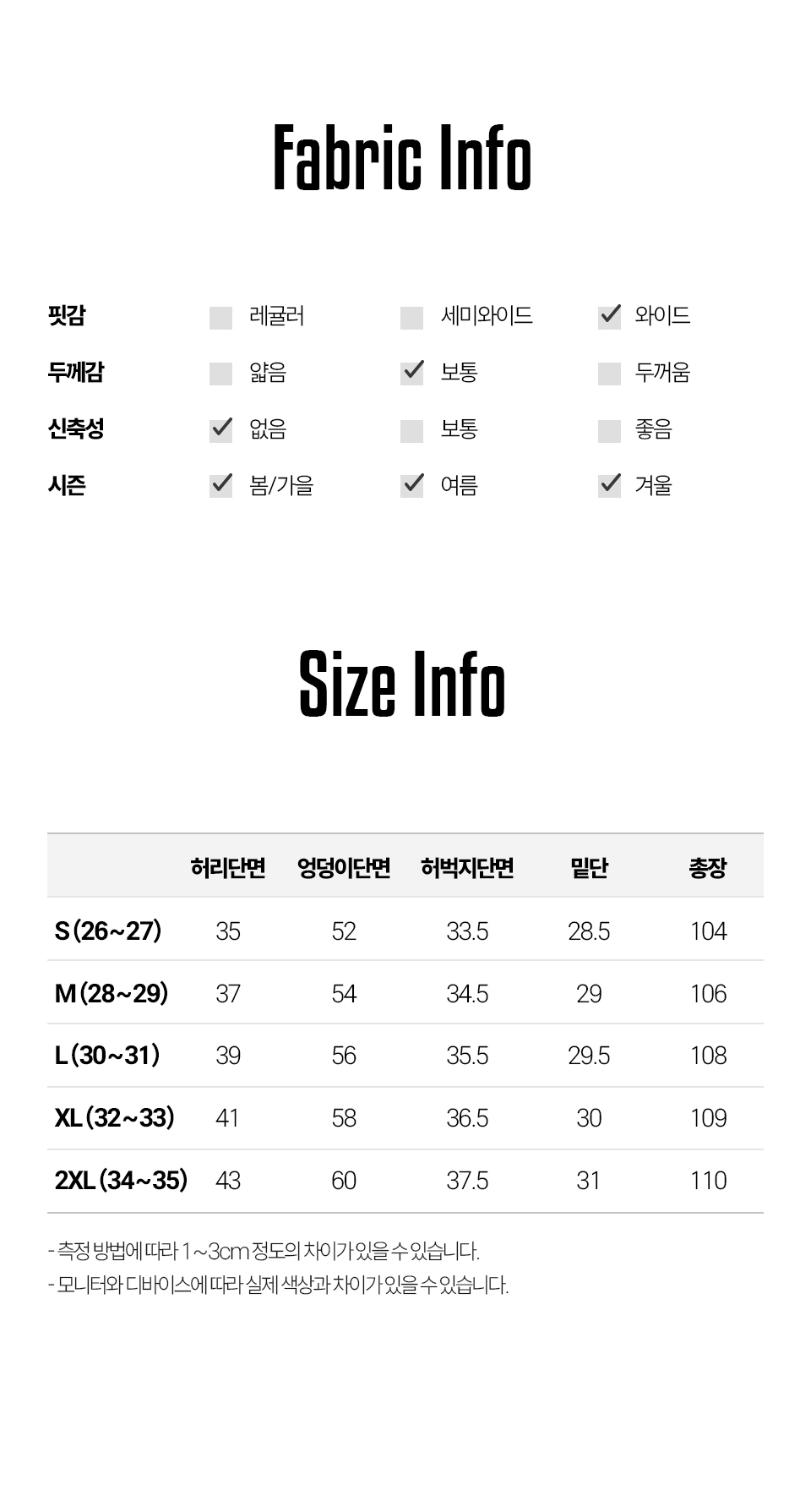 허리부터 밑단까지 일자로 떨어지는 와이드 스트레이트 핏으로 균형 잡힌 실루엣을 연출합니다.