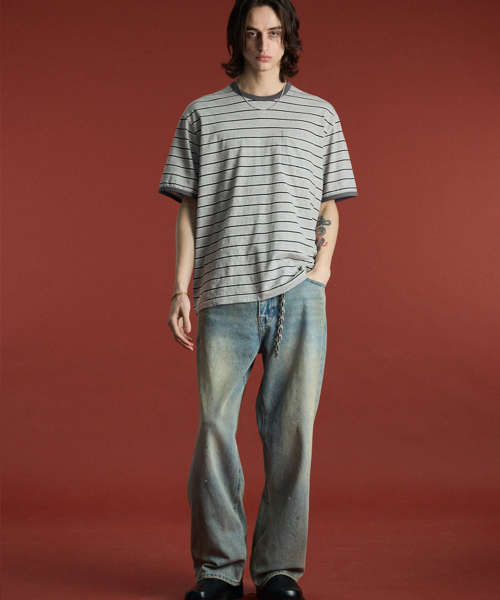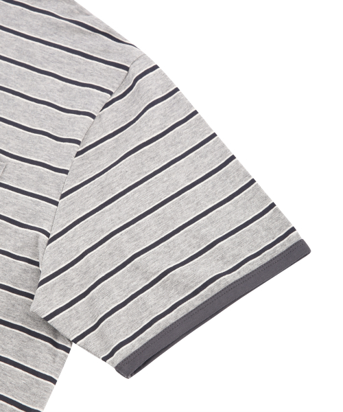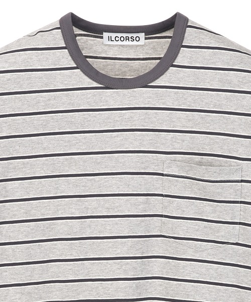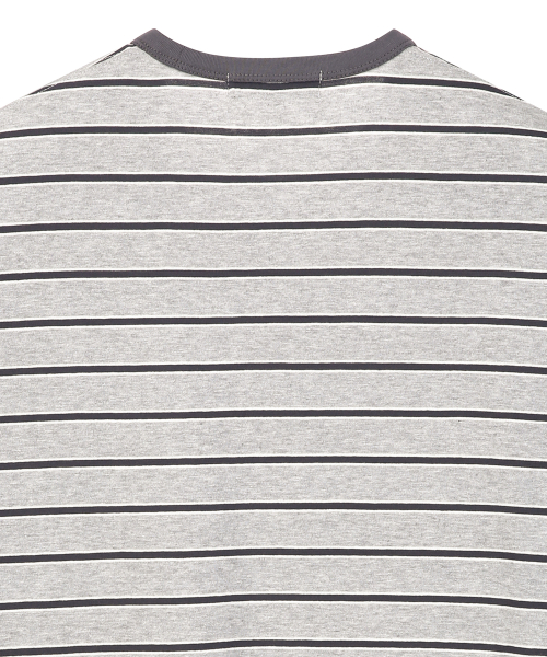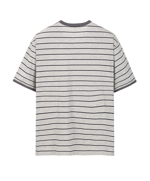 링거 스트라이프 포켓 반팔 티셔츠 그레이