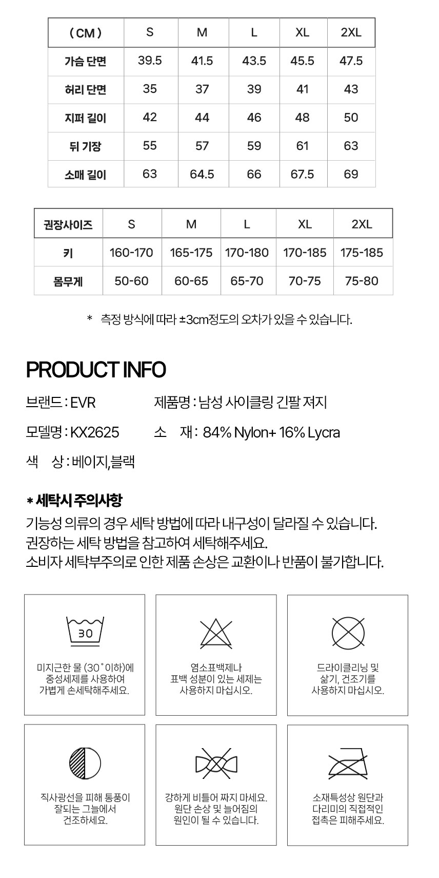 TECH 자전거 긴팔져지 KX2625(남성용)