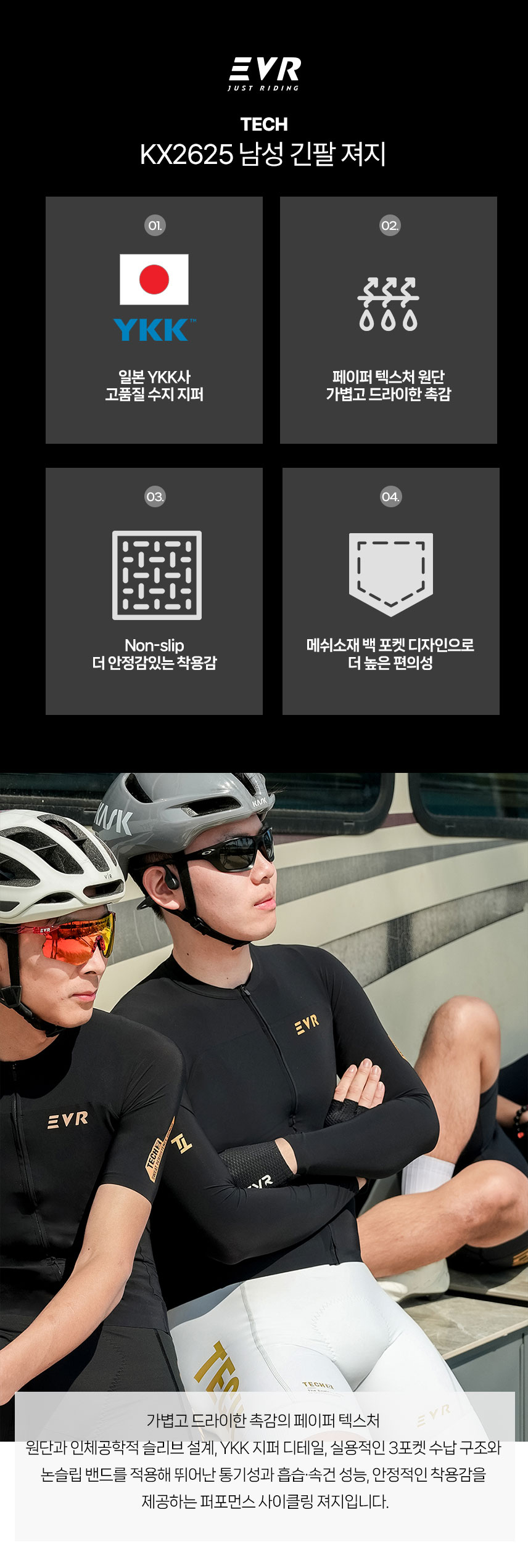 이브이알(EVR)은 감각적인 디자인과 기능성을 바탕으로 도심부터 산악 지형까지 다양한 라이딩 환경을 아우르며 사이클링을 단순한 스포츠를 넘어 일상의 라이프스타일로 확장해 제안하는 전문 사이클링 브랜드입니다.