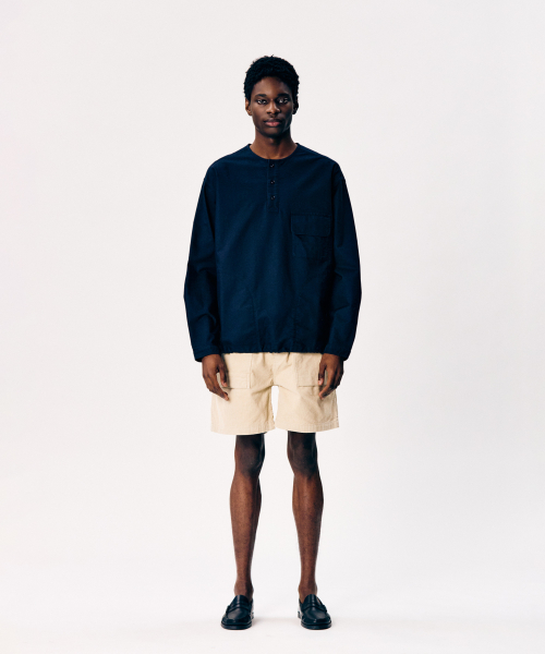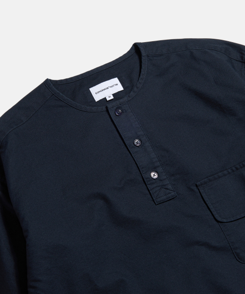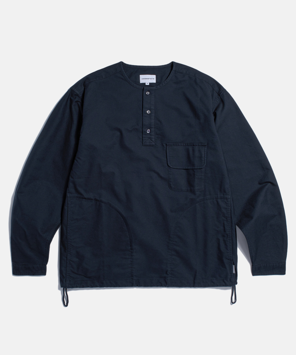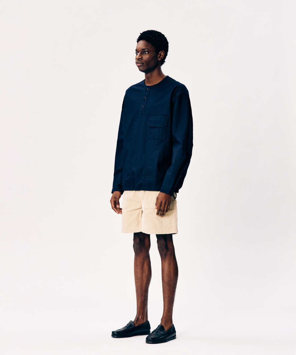 Cotton Oxford Henley Shirt Navy