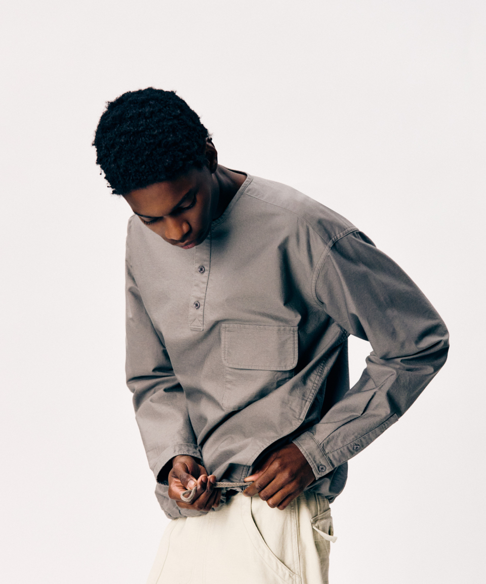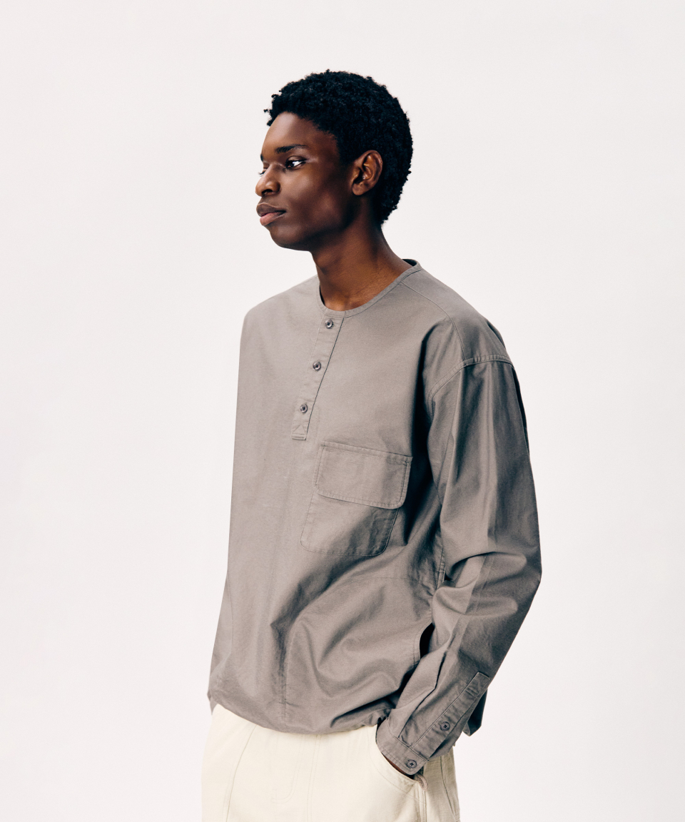 Henley Neck Pocket L/S Tee Off White