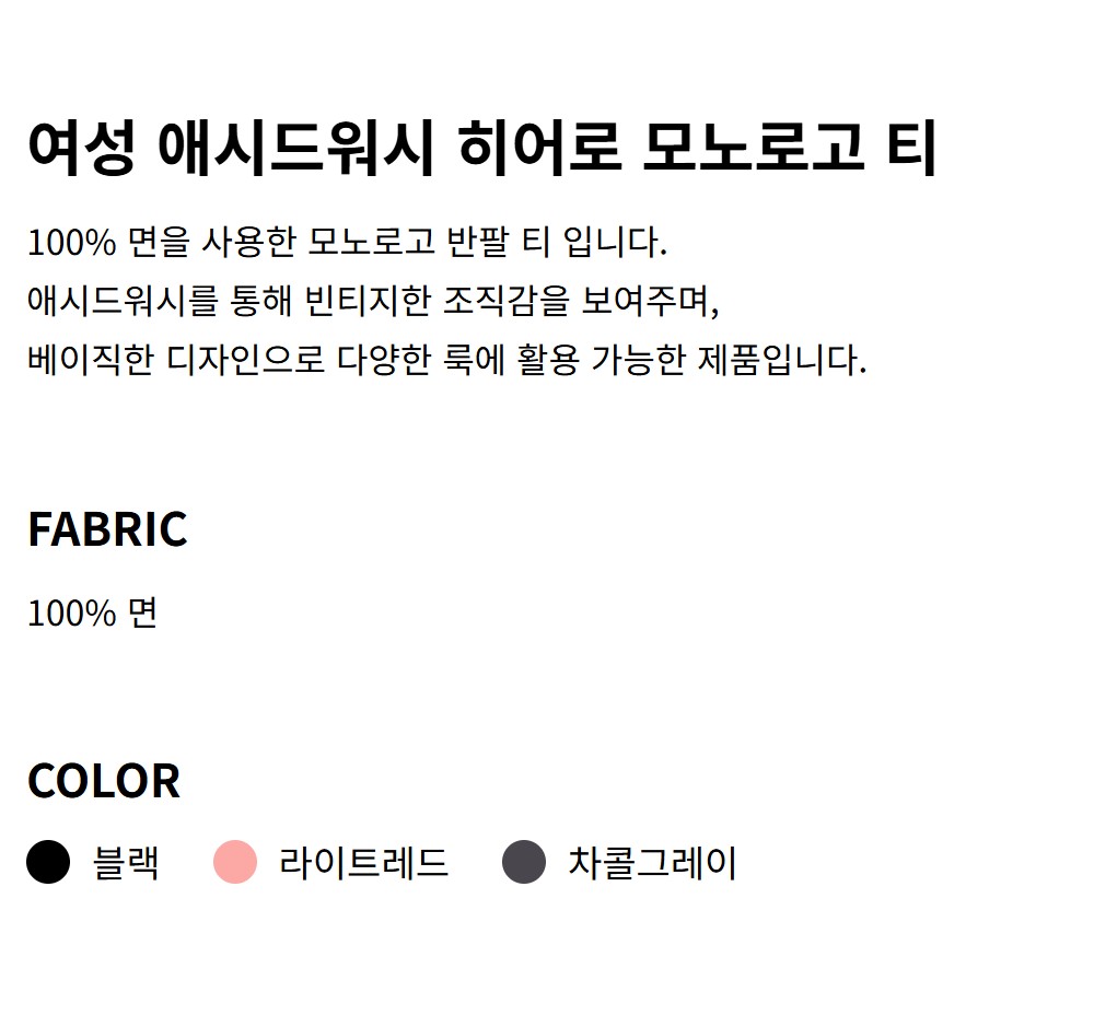 여성 애시드워시 히어로 모노로고 반팔 티셔츠 47G825G UB1
