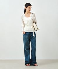 [SET] 시어 린넨 랩 니트 & 슬리브리스 화이트 MDKT124WHITE