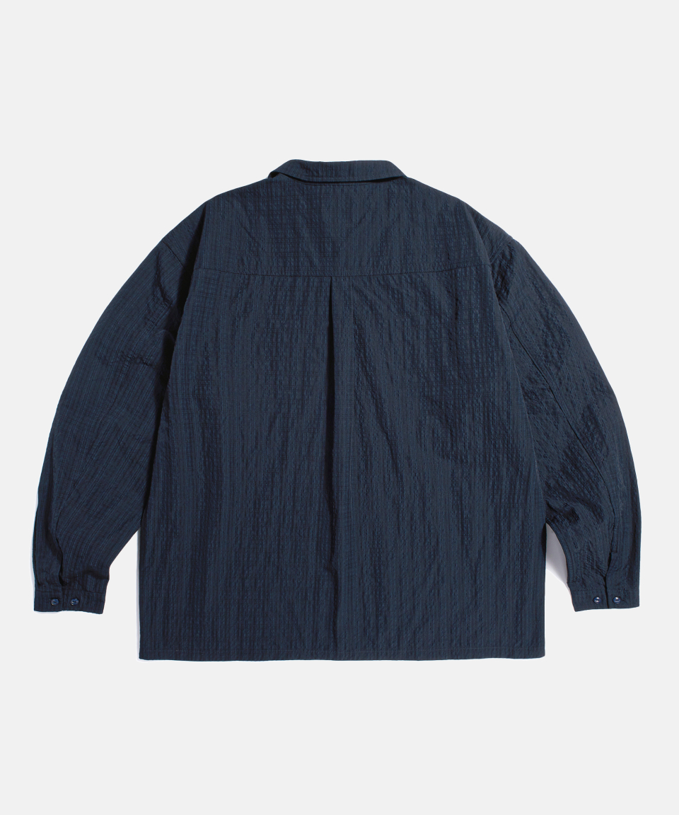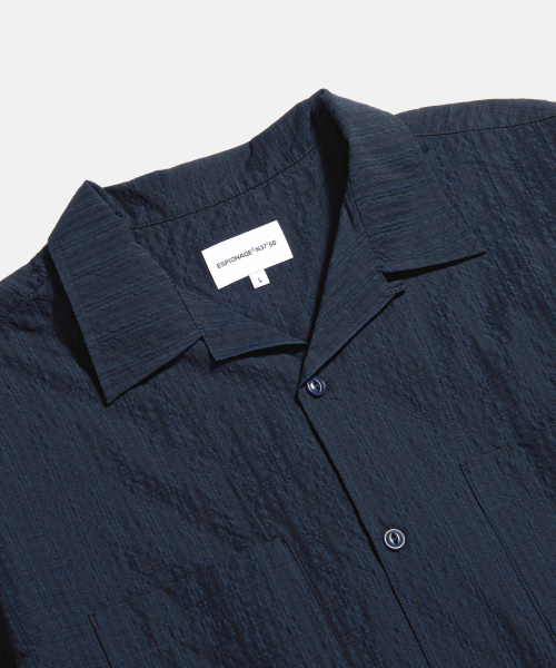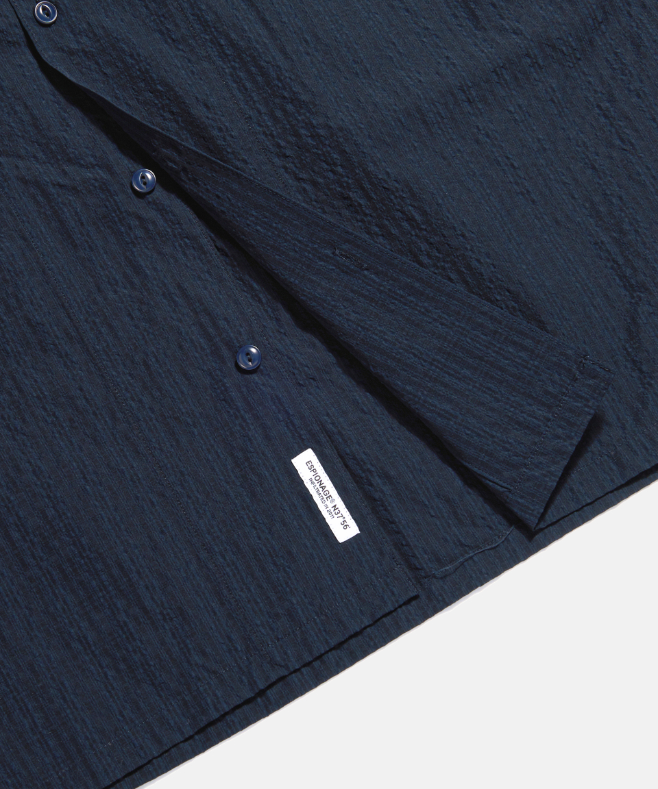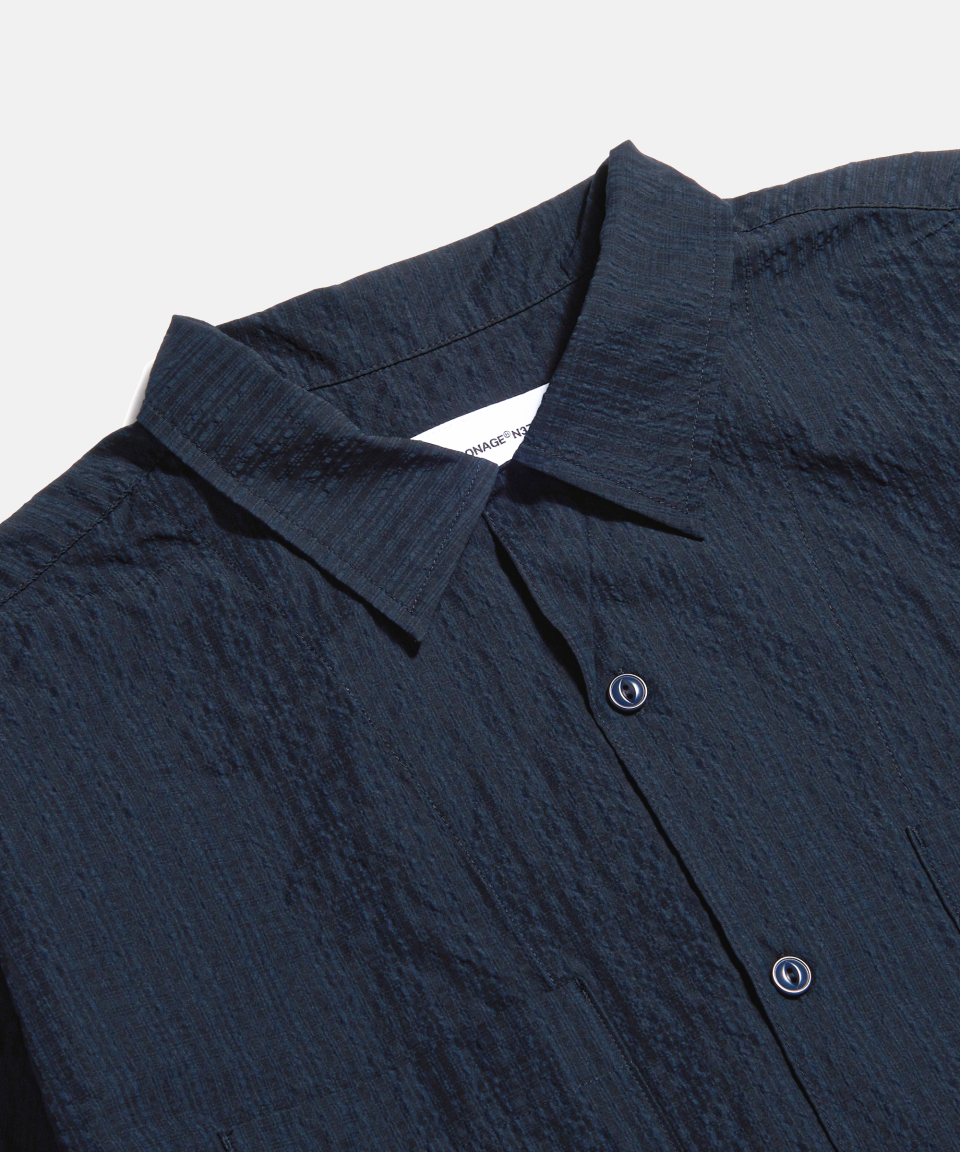 Checked Seersucker Open Collar Shirt Navy