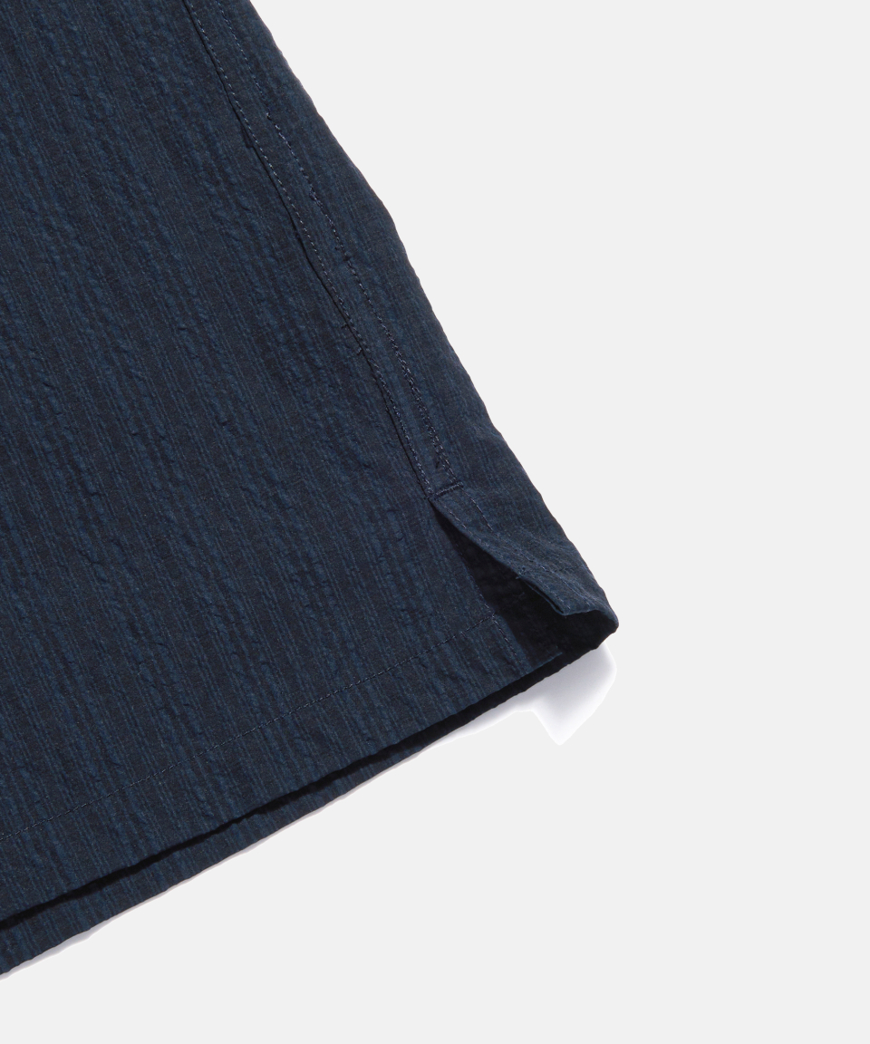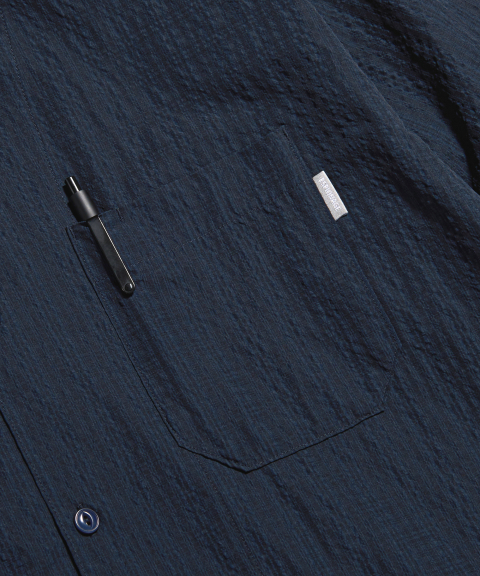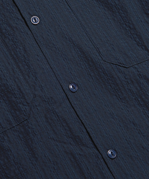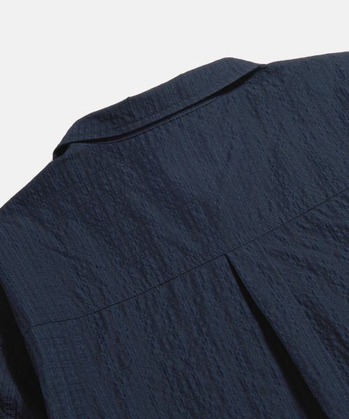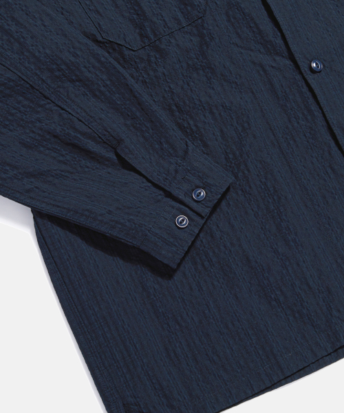 Checked Seersucker Open Collar Shirt Navy