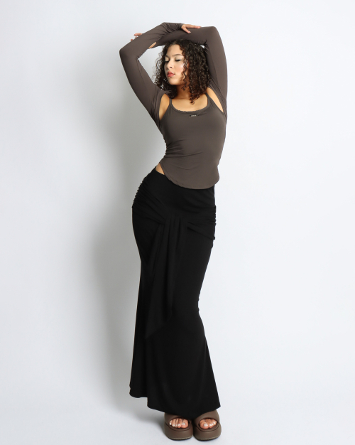 CS HIP SHIRRING MINI DRESS-007 (BLACK)
