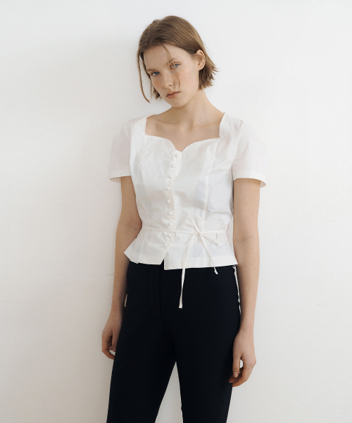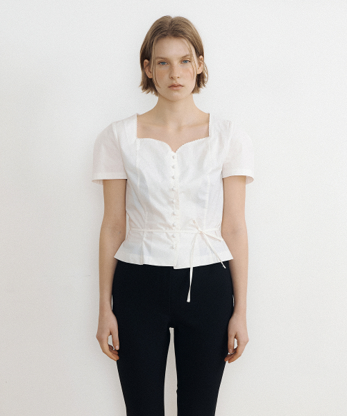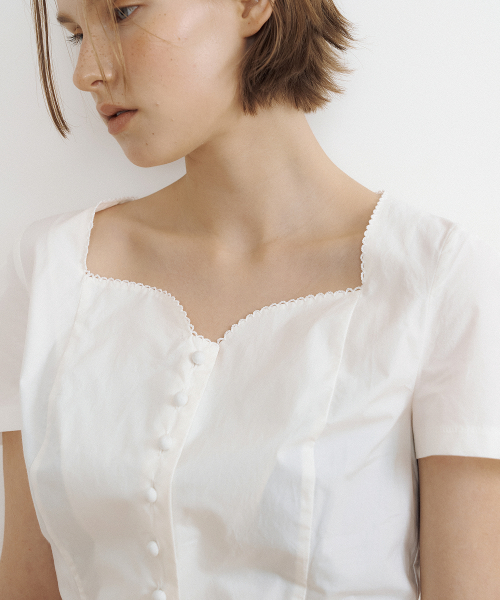 Tulip Neck Embroidered Puff Blouse (ivory)