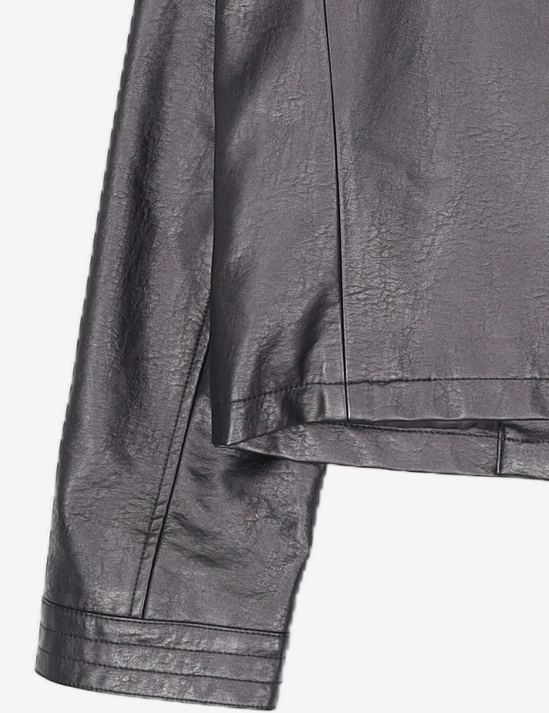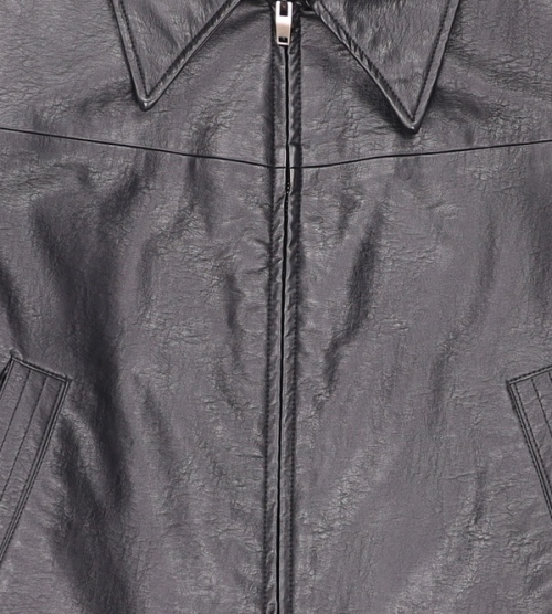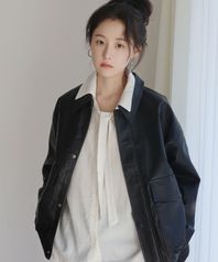 SIOT4079 페이크 레더 봄버 자켓_Black