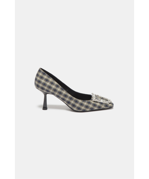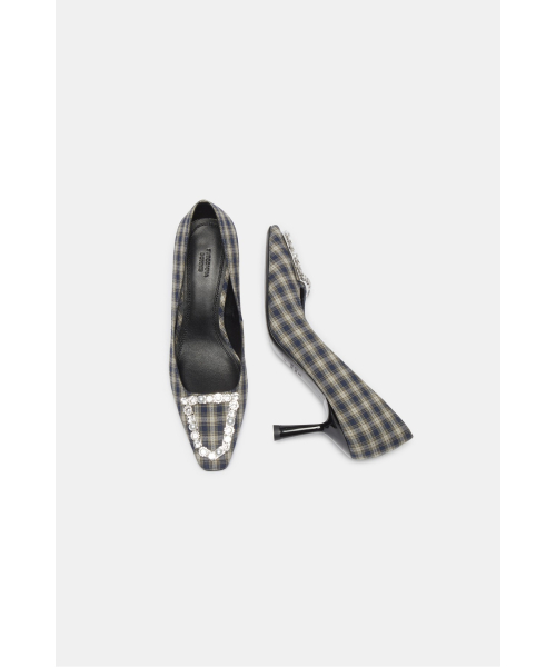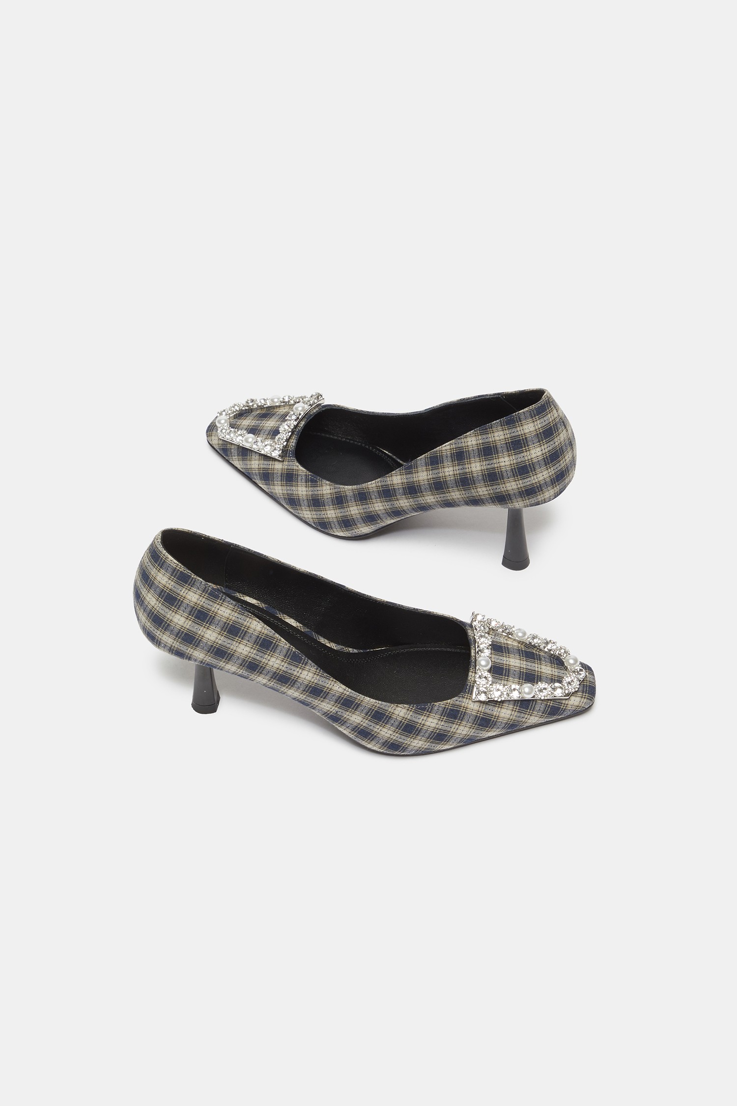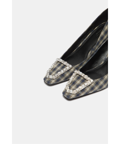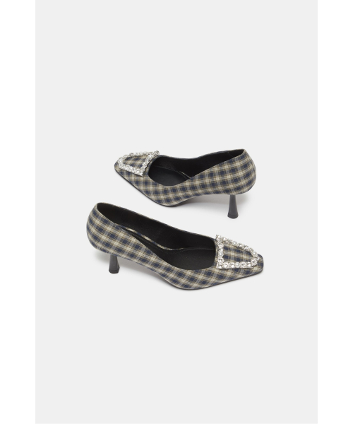 - 그린, 네이비 조화의 체크 원단에 진주와 주얼장식이 가득 세팅된