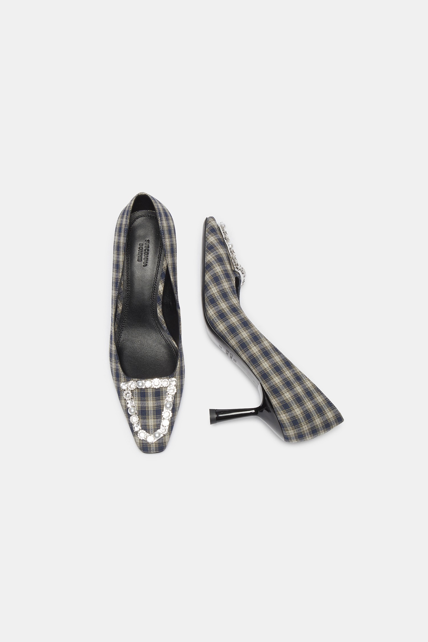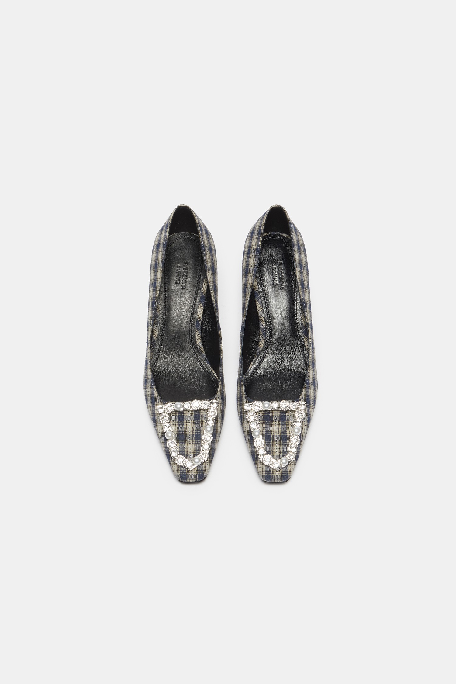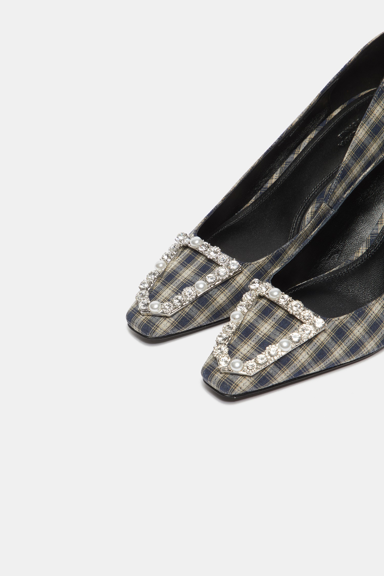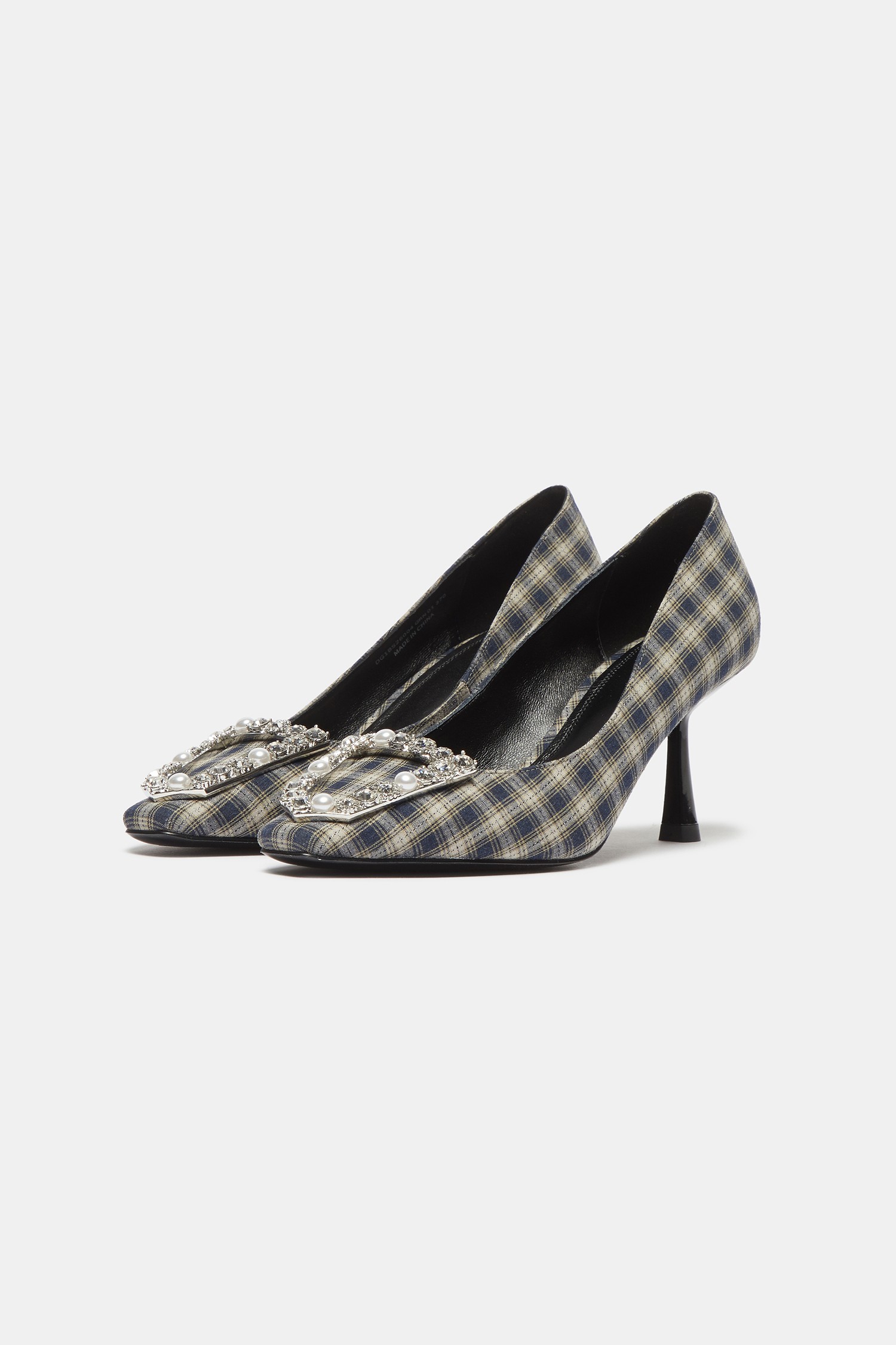 - 보석과 진주가 풍성하게 세팅된 폴리곤 장식으로 포인트를 준 스틸레토 펌프스.