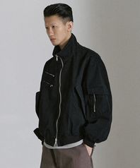 [피인오 X 디나쑈] 하이넥 플라이트 자켓 - 블랙