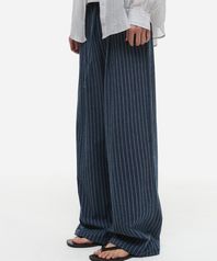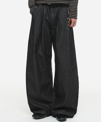 커브드 헤링본 스트라이프 데님 팬츠 블랙