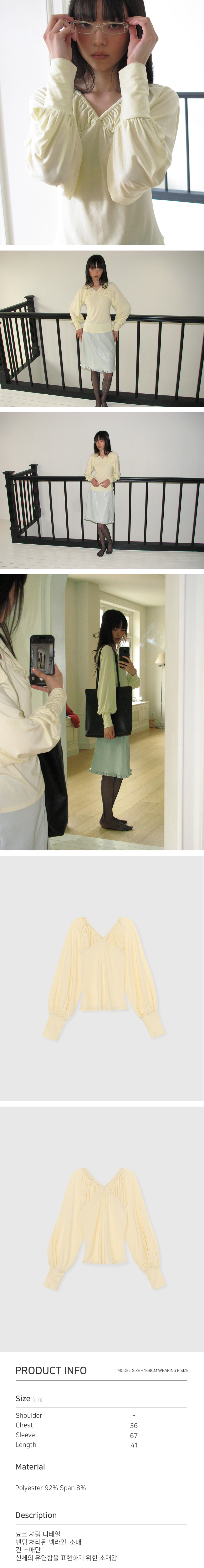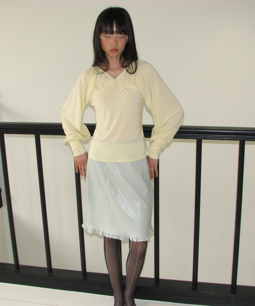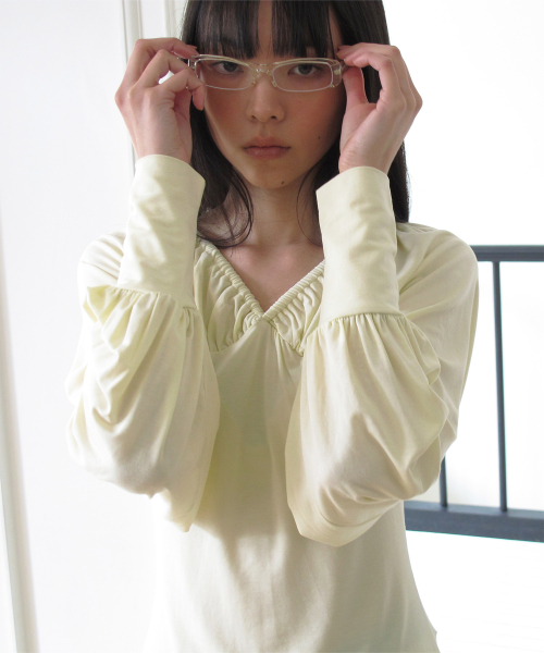 ribbon shirring tee (Yellow)