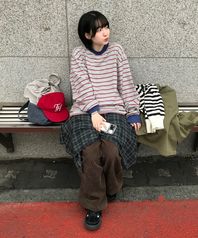 레트로 멀티 스트라이프 롱 슬리브 (레드)