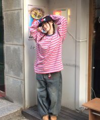 스트라이프 마린 코튼 롱 슬리브 (핑크/블루)