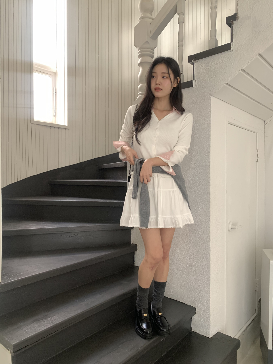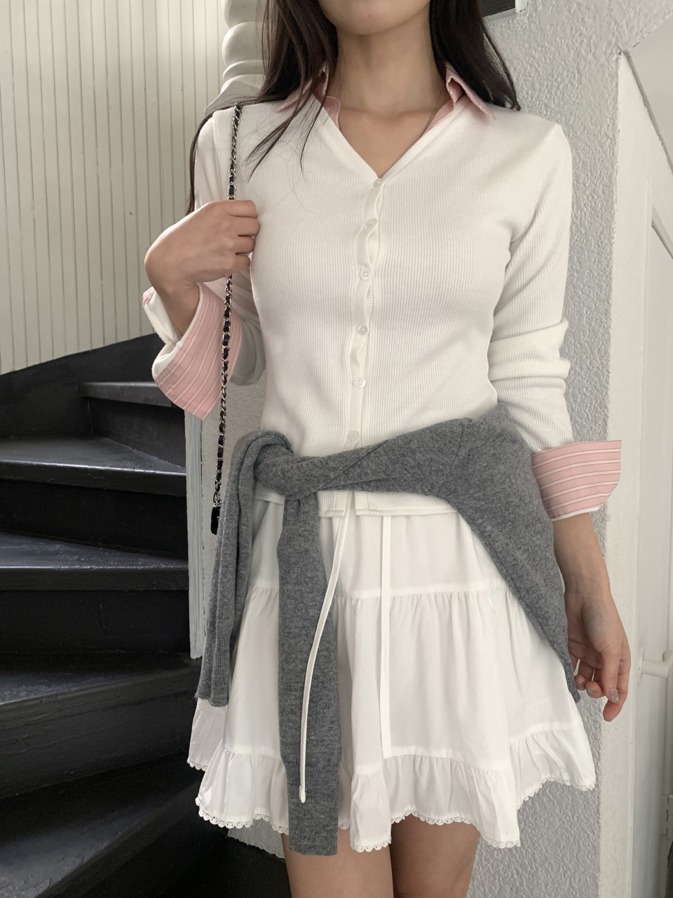 DOUBLE LAYER LACE WRAP PLEATS SKIRT_TT6S503IV