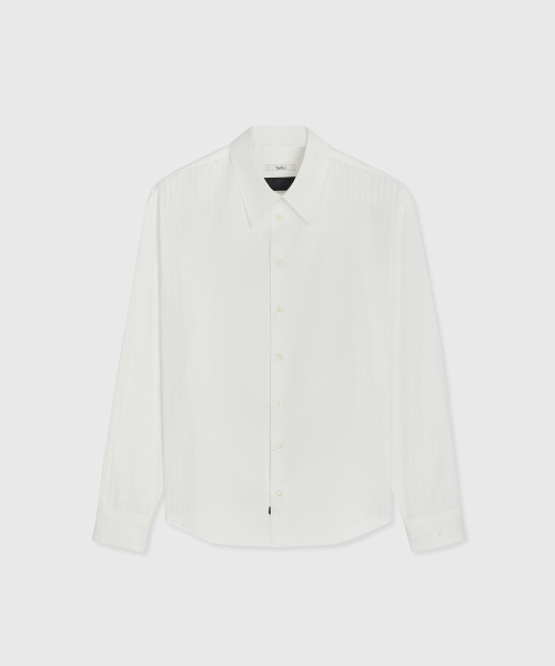 타일레 시그니처 클래식 보이 셔츠입니다. 은은한 화이트톤 명암의 차이를 강조한 코튼 혼방 스트라이프 소재는 럭셔리한 터치와 순도높은 실크 광택이 특징적입니다. 스탠다드 칼라에 레귤러 핏 타입이며 정교한 테일러링 베이스로 봉제, 사용된 단추는 모두 천연 자개단추 입니다. 밑단 플라켓에 Taille Black label 과 소매 커프스 TL 시그니처 자수가 장식되어 있습니다. 정도의 차이로 완성도 높은 룩을 구성해주는 타일레 시그니처 베이직 아이템입니다.