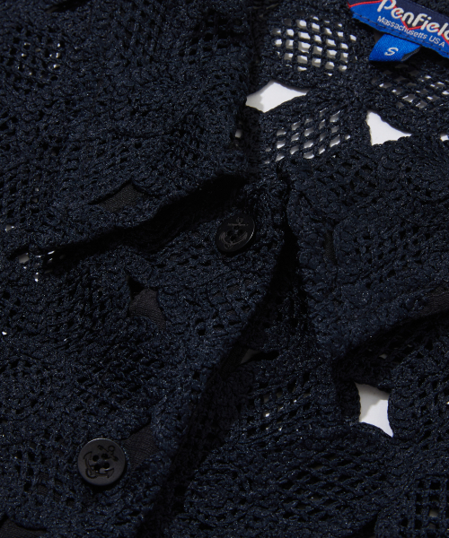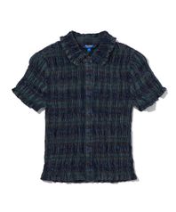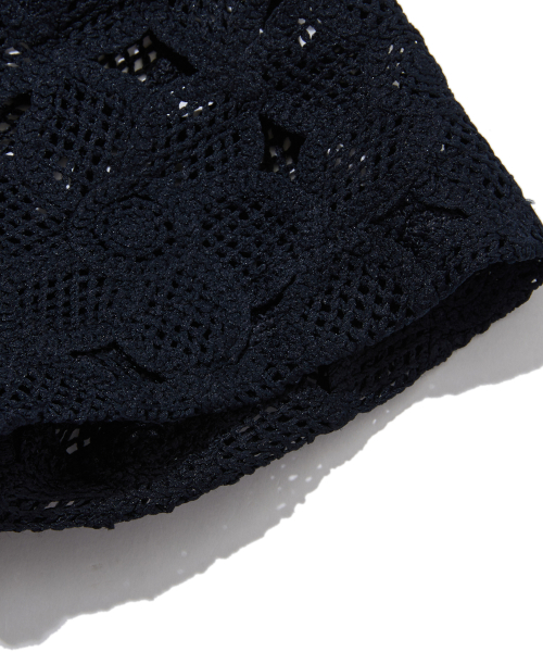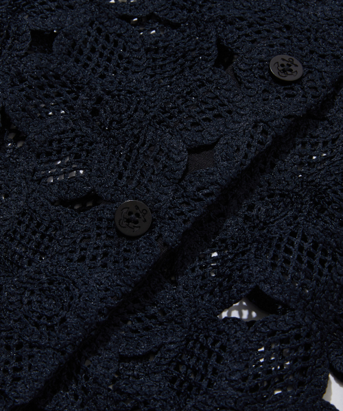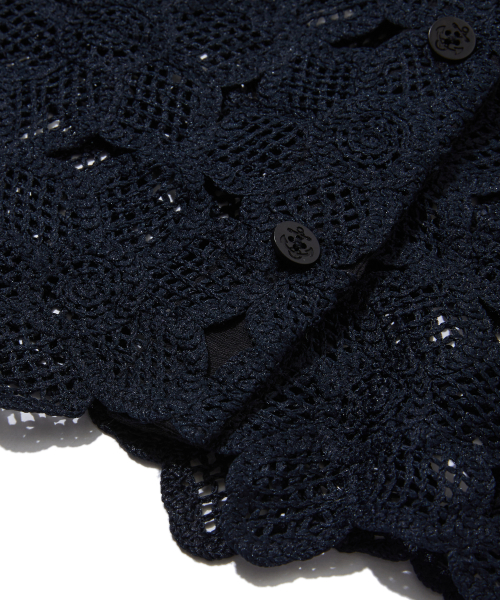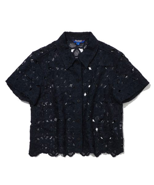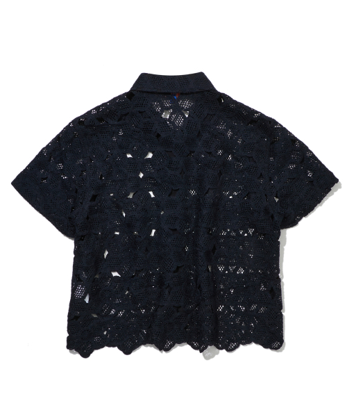 플라워 패턴 크로셰 반팔 셔츠 네이비_FS2CT23F