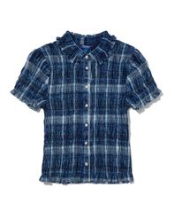 체크 워싱 스모킹 셔츠 블루_FS2WR01F