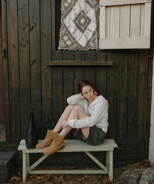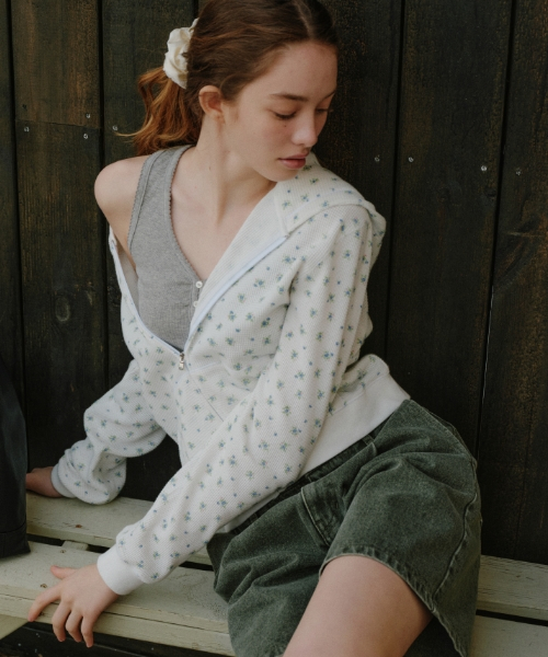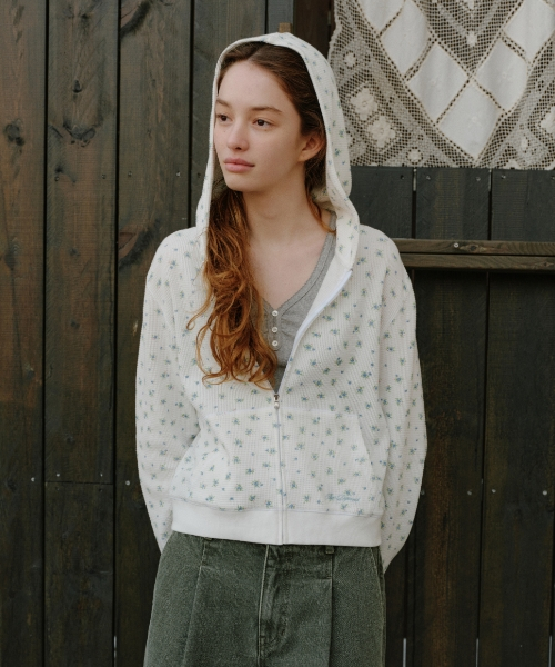 플라워 패턴 후드 집업 [아이보리]