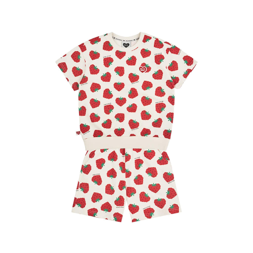 벨리타앤보이즈의 시즌그래픽 프린트가 사랑스러워보이는 키즈 상하복 세트 아이템입니다. 크림 컬러 바탕에 레드 컬러 프린트를 적용해 밝고 경쾌한 인상을 연출했습니다. 미니쭈리 소재를 사용해 가볍고 부드러운 착용감을 제공하며, 상의는 카라와 밑단에 립 마감 처리를 더해 안정감 있게 완성했습니다. 가슴 부분에는 자수 와펜 디테일을 더해 브랜드 포인트를 살렸습니다. 하의는 활동성을 고려한 4.5부 기장의 팬츠로 허리 밴딩 디자인을 적용해 편안하게 착용할 수 있습니다. 데일리룩은 물론 야외 활동 시에도 활용하기 좋은 키즈 상하복 세트 아이템입니다.