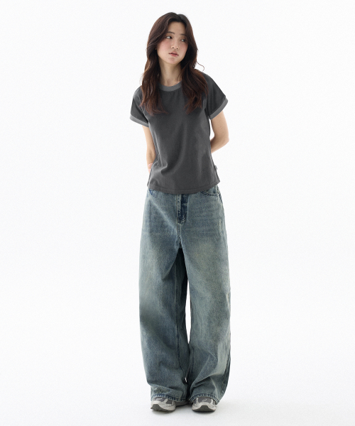 레이어드 티칼라 반소매 풀오버 네이비 (BF5751C04R)