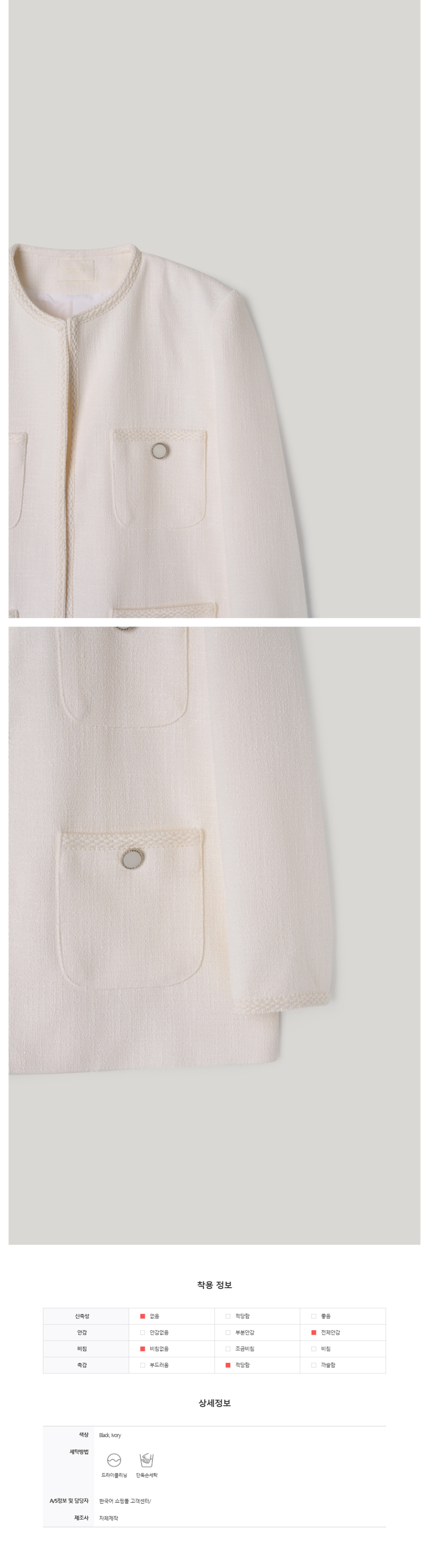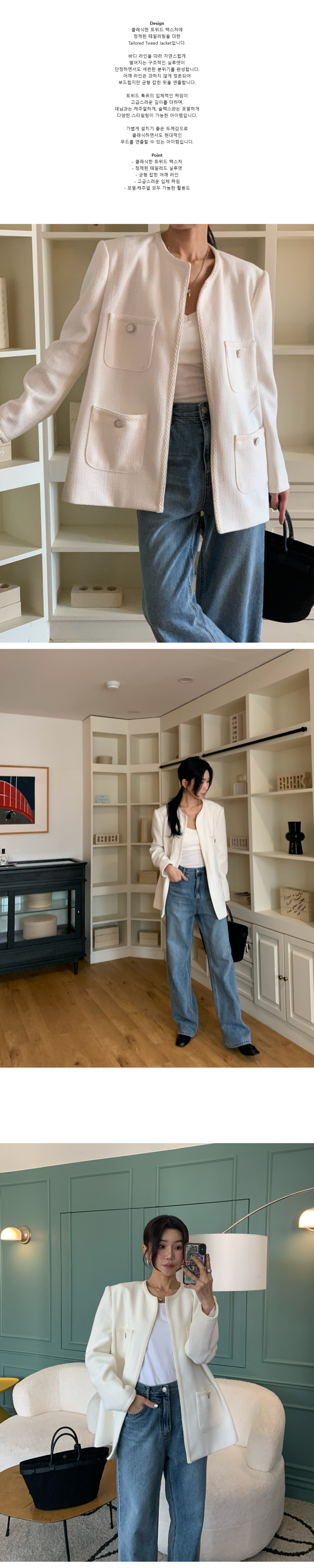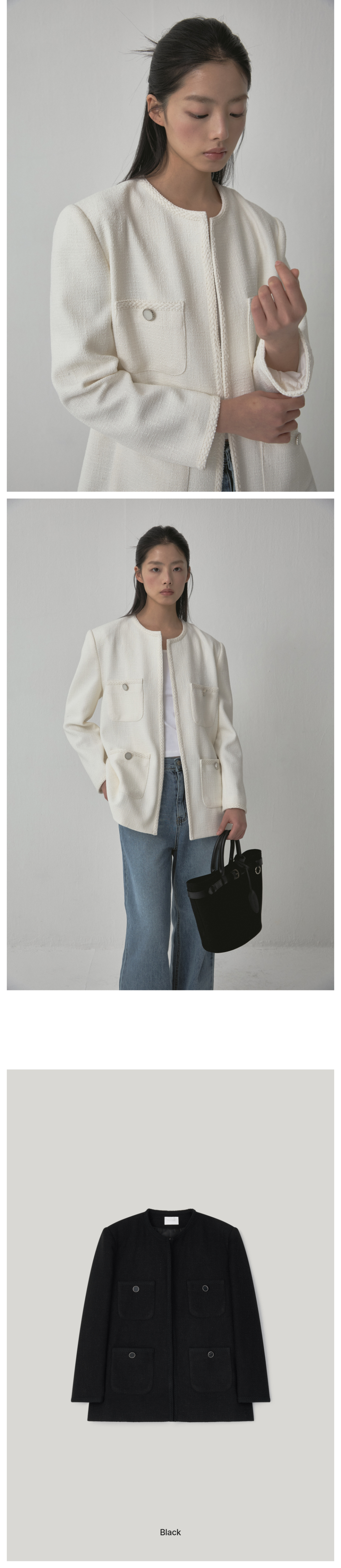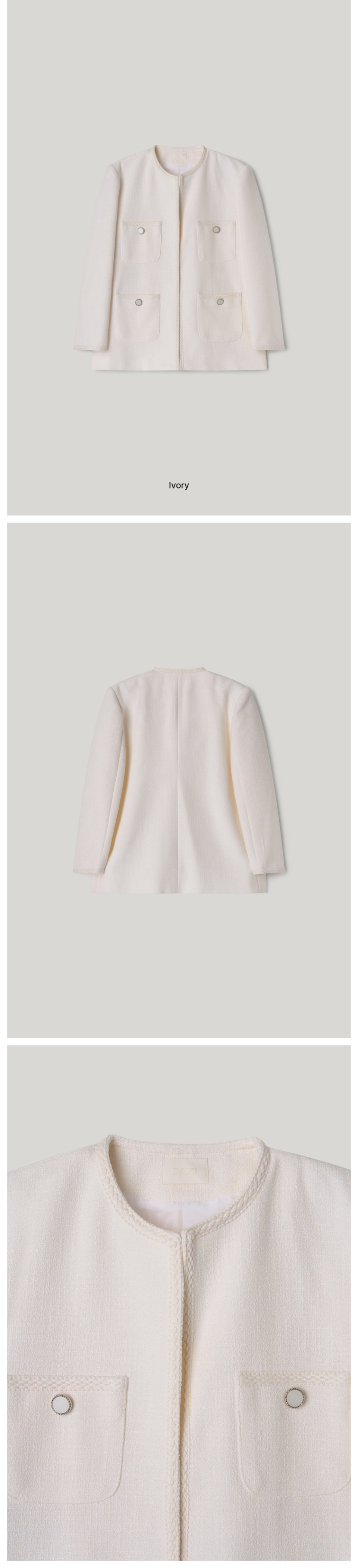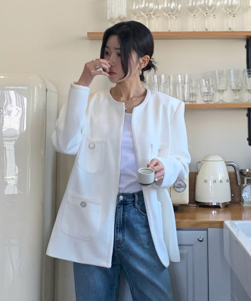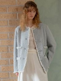 No-Collar Fringe Tweed Jacket MU2611JK101M