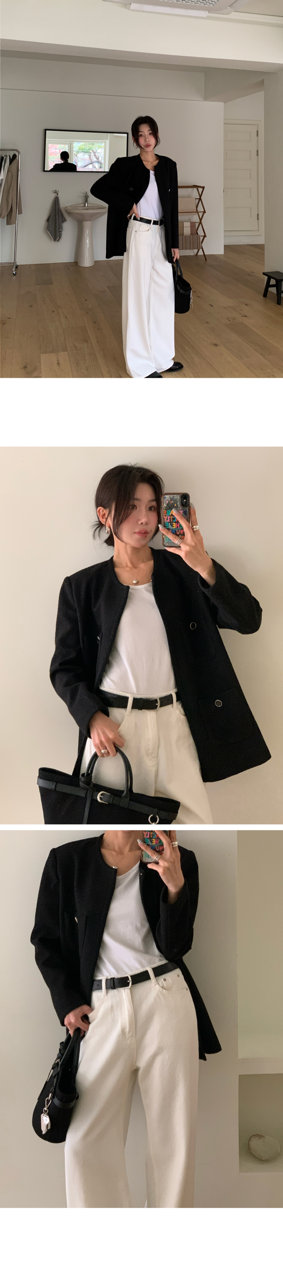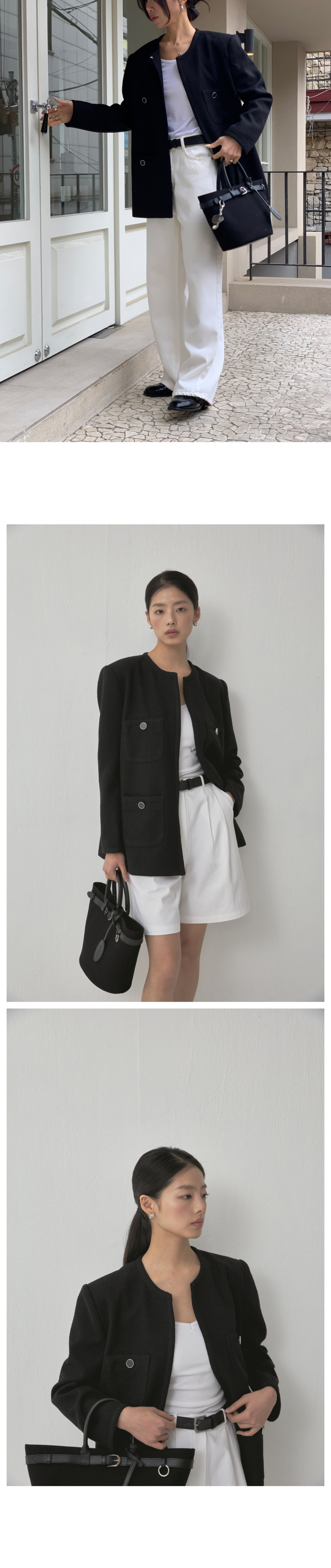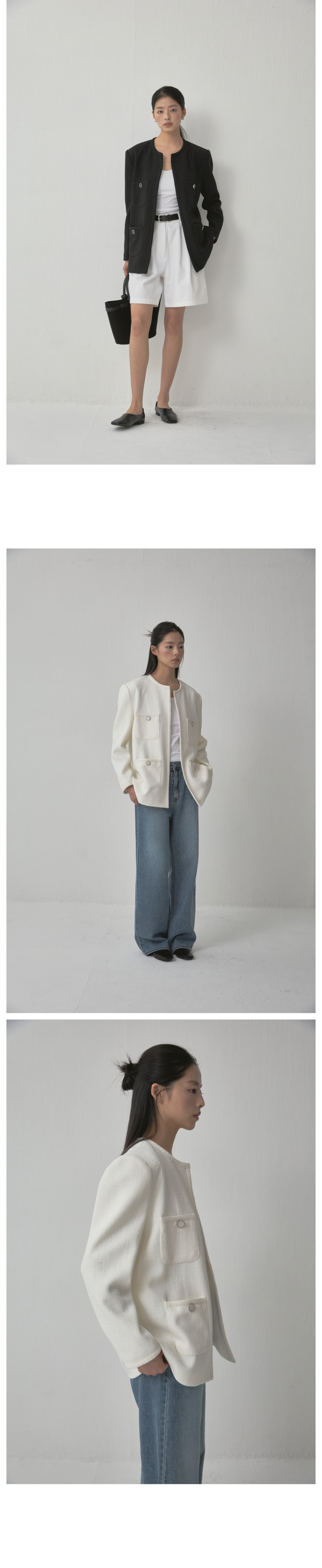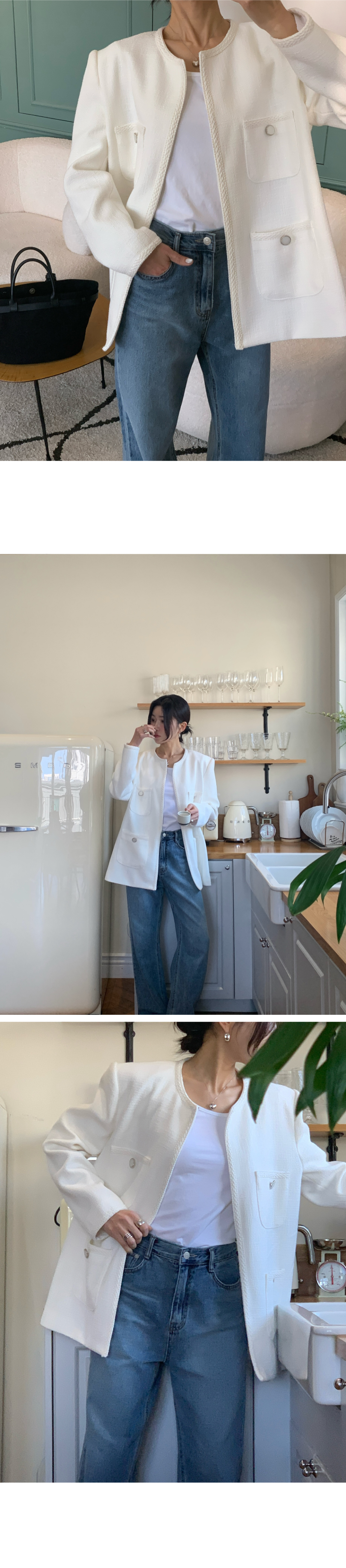 No-Collar Fringe Tweed Jacket MU2611JK101M