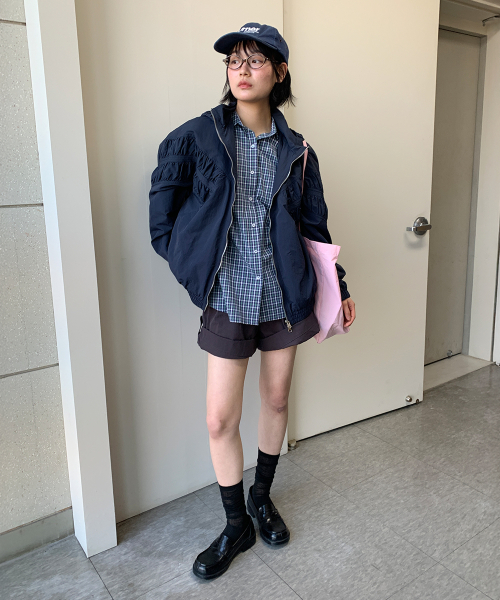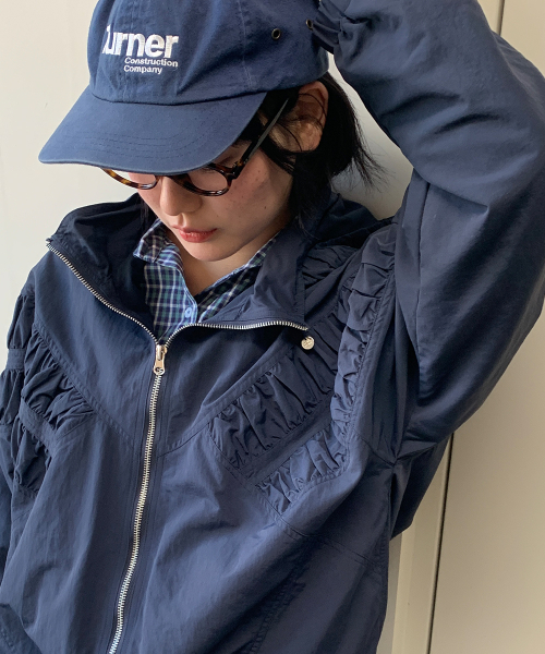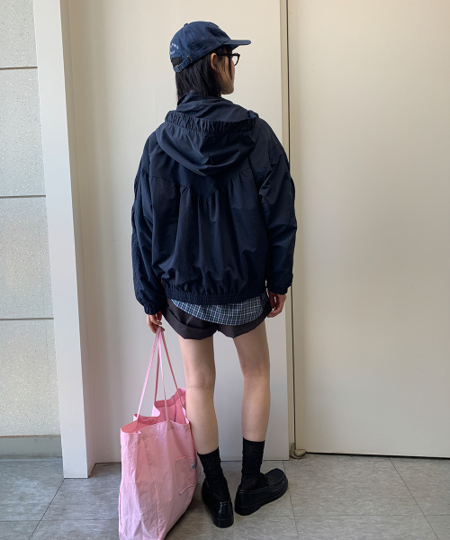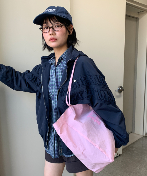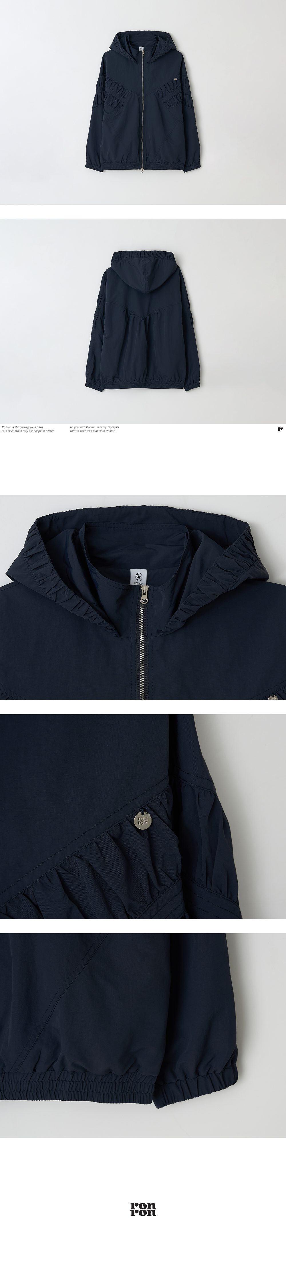 RUCHED HOODED LOOSE FIT WIND JUMPER NAVY