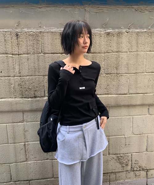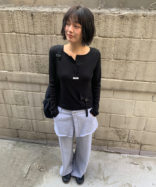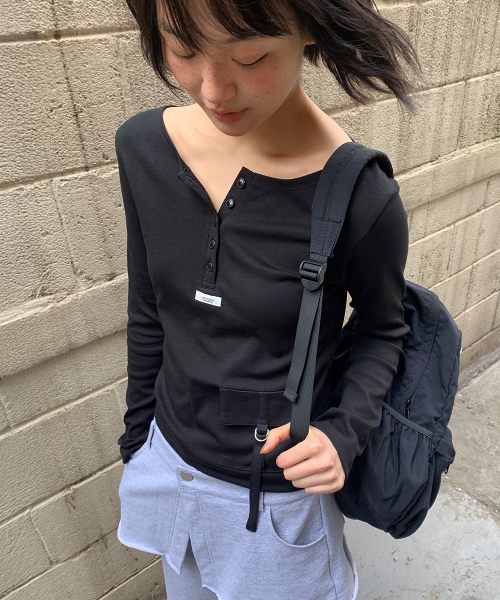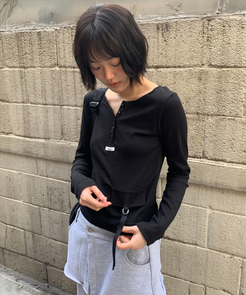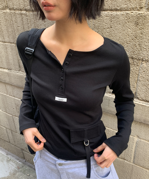 STRAP POCKET HENRYNECK LONG SLEEVE BLACK