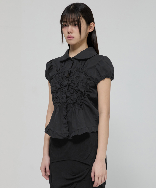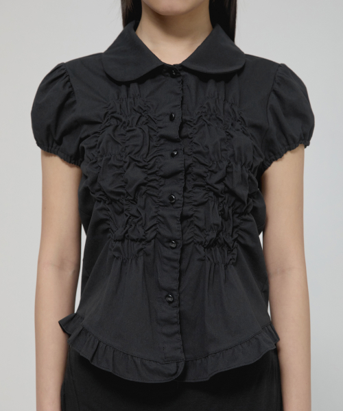 Saya Frill Puff Blouse (FL-180_Black)