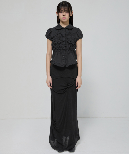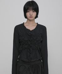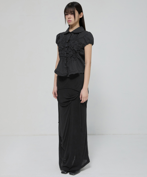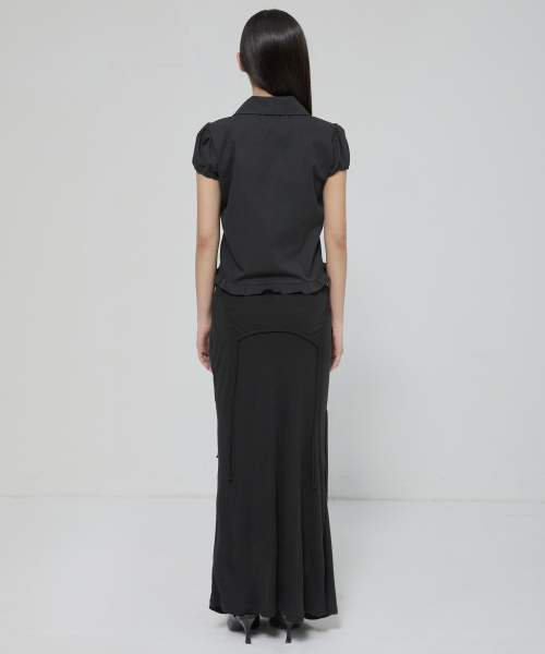 Saya Frill Puff Long Blouse (FL-190_Black)