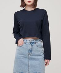 우먼즈 크루 넥 크롭 긴소매 티셔츠 [다크 네이비]