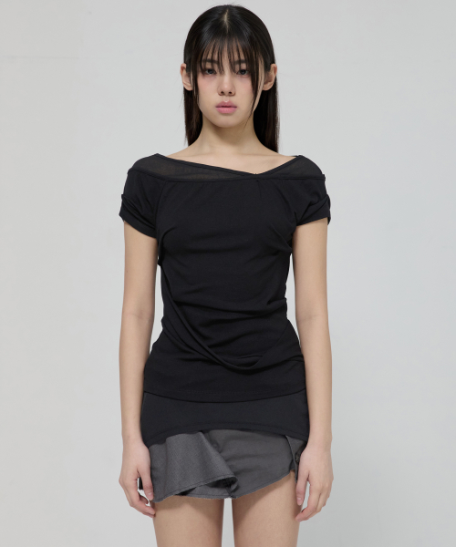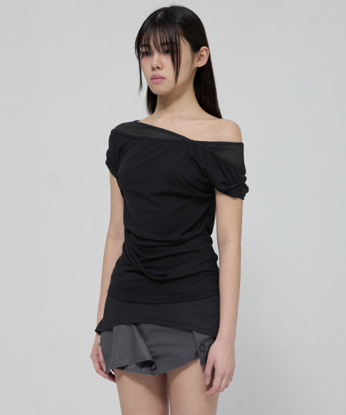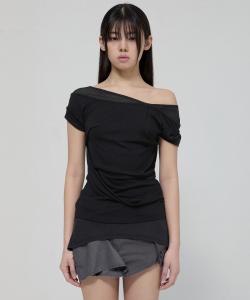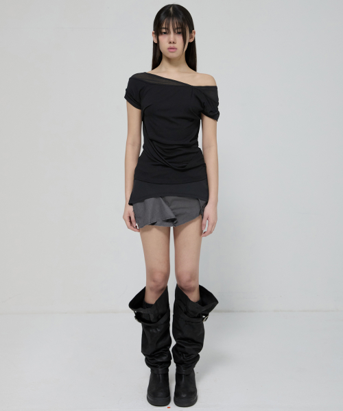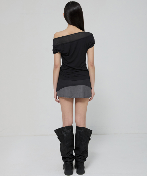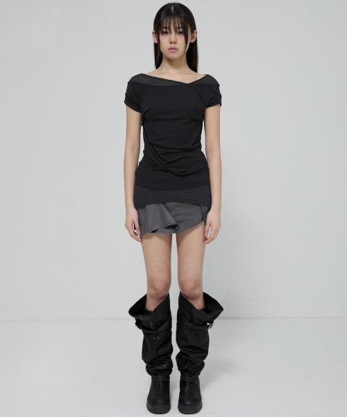 [유인 PICK] Asymmetrical Draped Long Skirt (FL-263_Dark Gray)