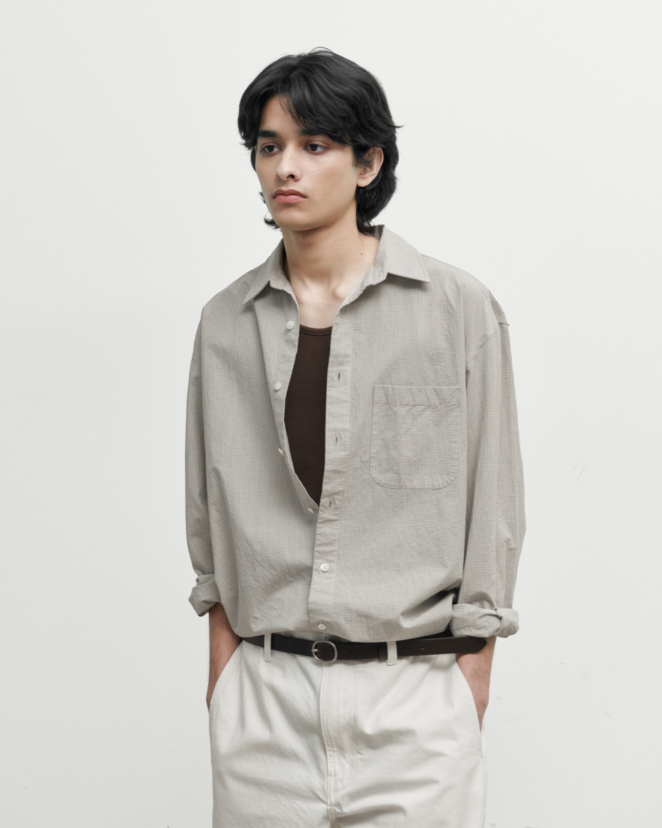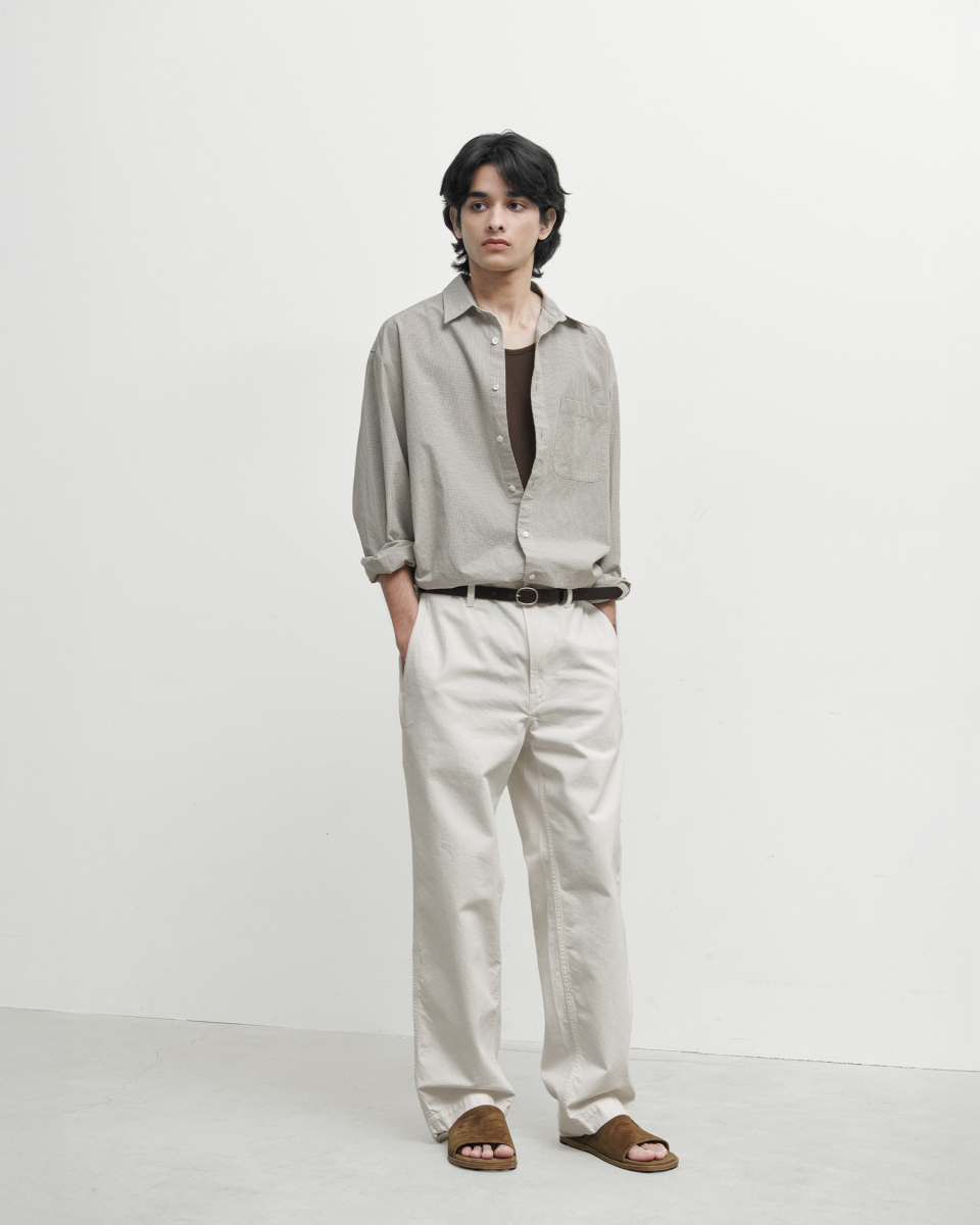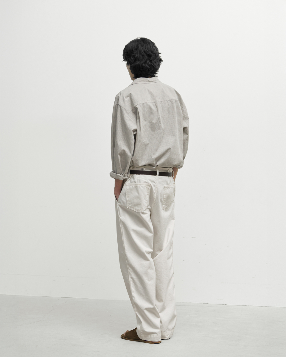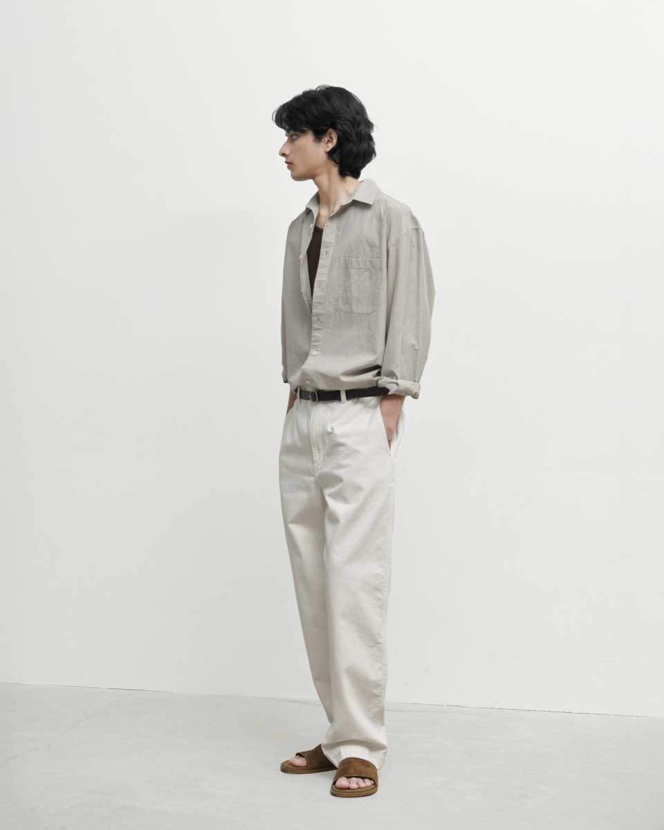 오가닉 코튼을 사용해 피부 자극을 최소화했으며, 가공을 통해 자연스러운 구김과 독특한 표면감을 완성했습니다.