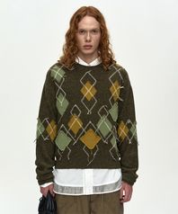 TOM ARGYLE CREW-NECK SWEATER atb1415m(KHAKI)