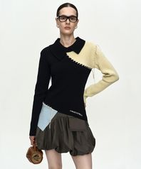 ASYMMETRIC PANEL COLLAR SWEATER atb1476w(BLACK)