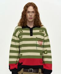 STRIPE DAMAGED POLO SWEATER atb1419m(MULTI)