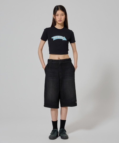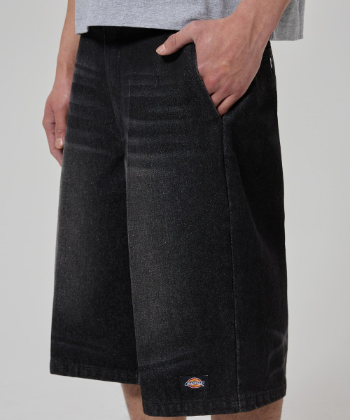 워시드 42283 루즈핏 데님 워크쇼츠 Washed Black