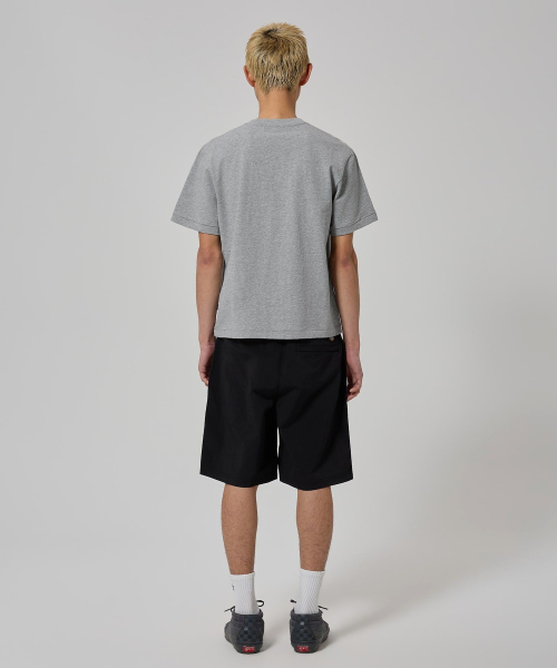 세미 크루넥 머슬핏 무지 반팔 티셔츠 [차콜]