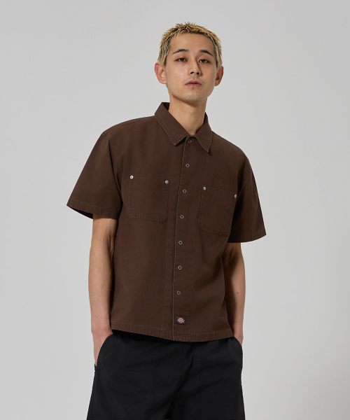 워시드 덕 캔버스 워크 셔츠 Brown