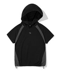 (우먼) WAVE 로고 심볼 배색 반팔 후디_블랙
