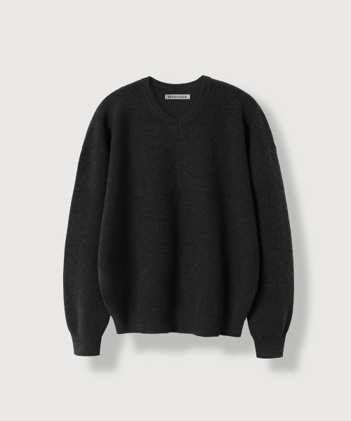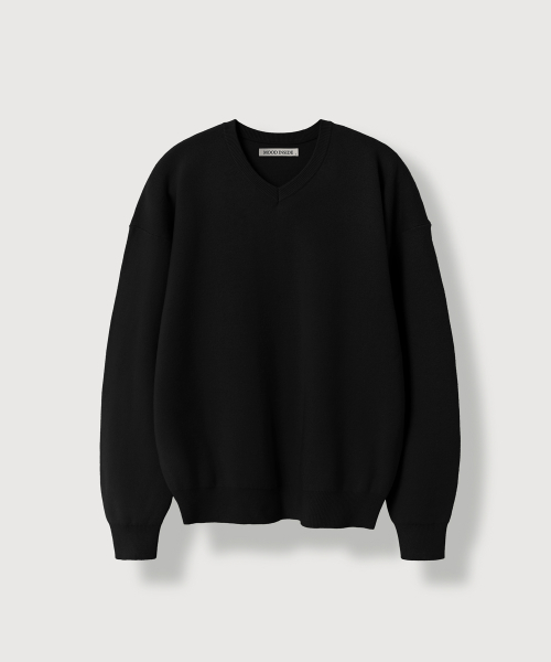 워셔블 수피마 코튼 브이 넥 니트 [블랙]