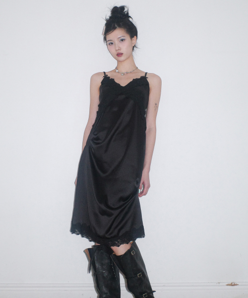 Fakiii Ribbon Pintuck Slip Dress_Black