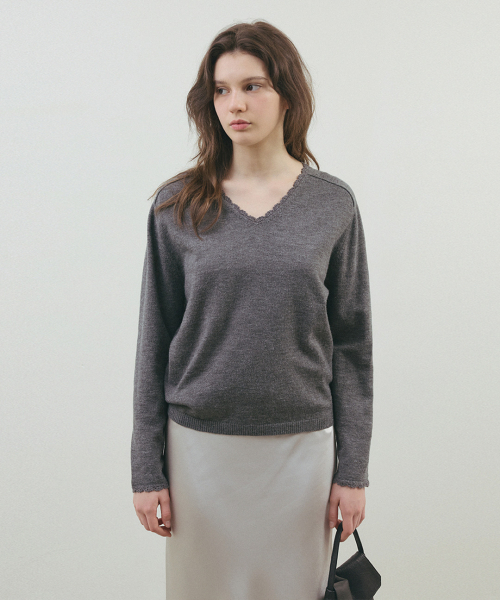 블룸 레이스 브이넥 니트_Melange