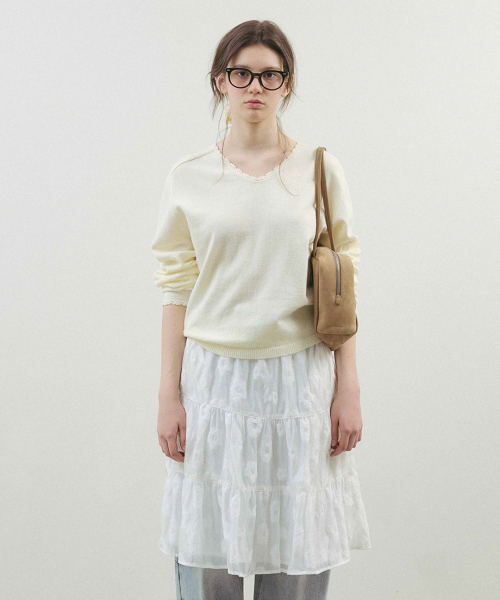 블룸 레이스 브이넥 니트_Vanilla
