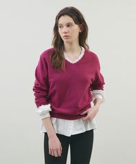블룸 레이스 브이넥 니트_Magenta