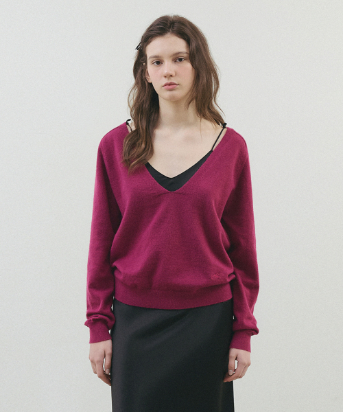 솔리드 딥 브이넥 니트_Magenta